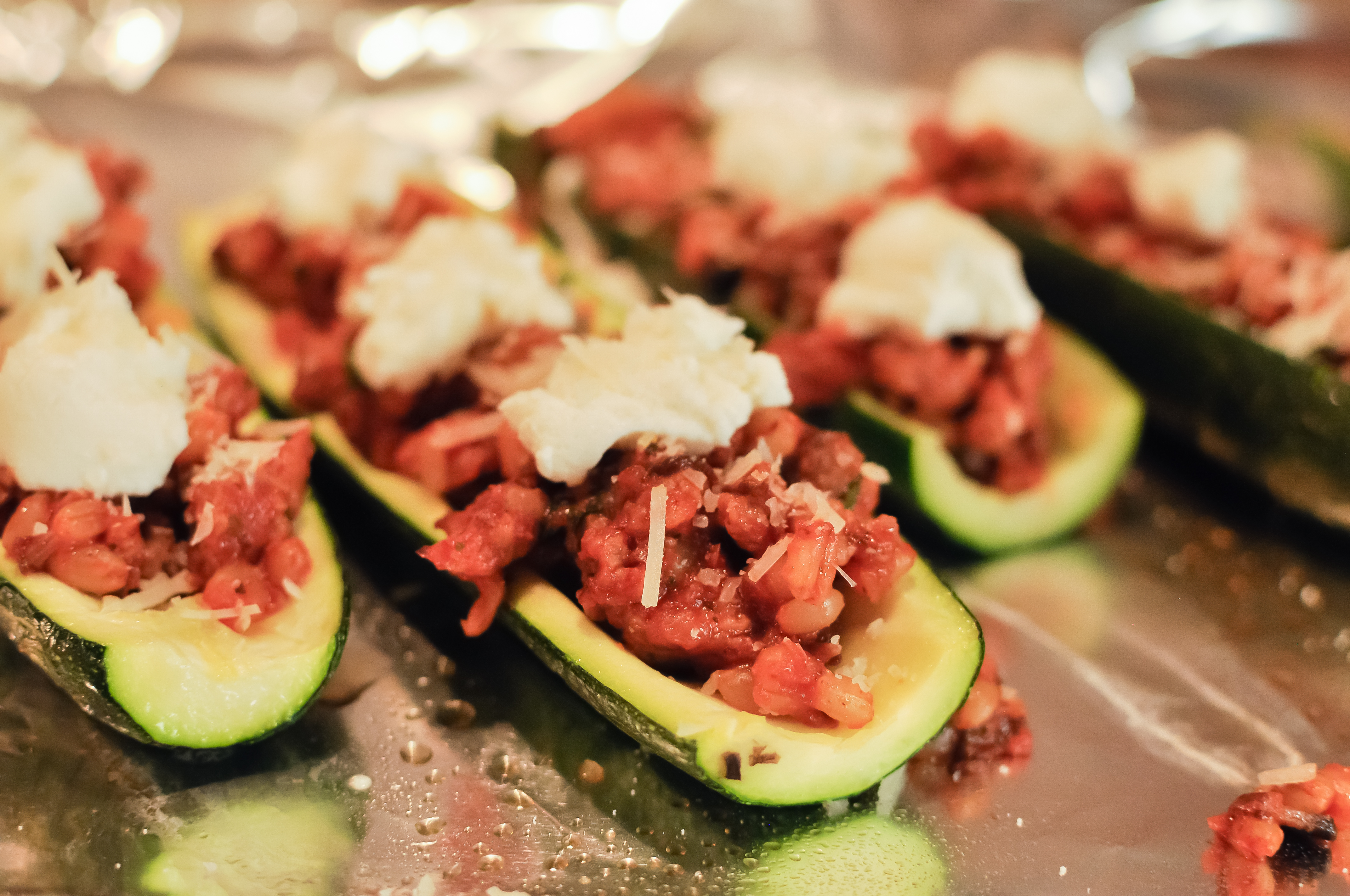11. Place stuffed zucchini in the broiler until top of cheese of slightly browned. Keep a close watch, this only take a couple minutes. You can also tell the zucchini is perfectly cooked when he skin starts to curly in a bit. Enjoy!