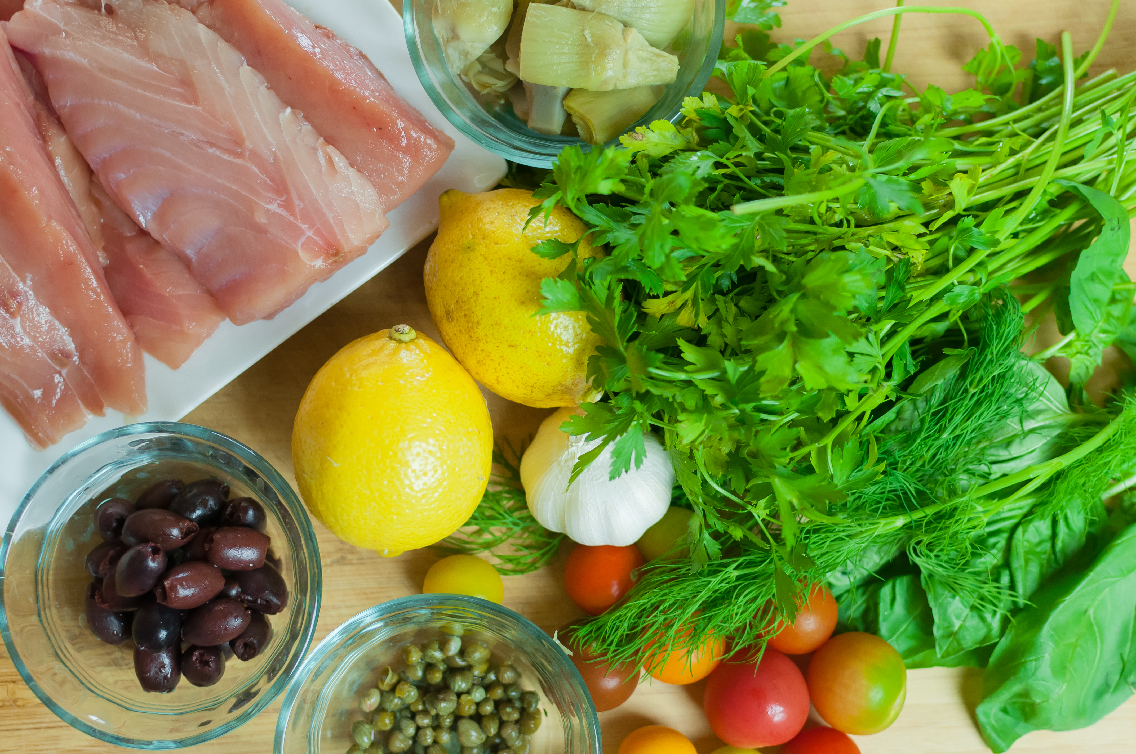 We still have a few weeks of summer so I want to take advantage of the grill as much as possible. Keeping the heat out instead of inside the kitchen is always a good thing, plus who doesn’t love the smell of the smoking grill on a summer day. As I’ve mentioned before, the Mediterranean diet is super healthy, fresh and delicious, especially for those trying to avoid inflammation of the joints like my hubby. The flavors are so flavorful, yet light! I posted a recipe with chicken when we first launched the blog, but here’s a take on Mediterranean flavors with yummy seafood. Again, we have the opportunity of using my hubby’s freshly caught yellowtail!