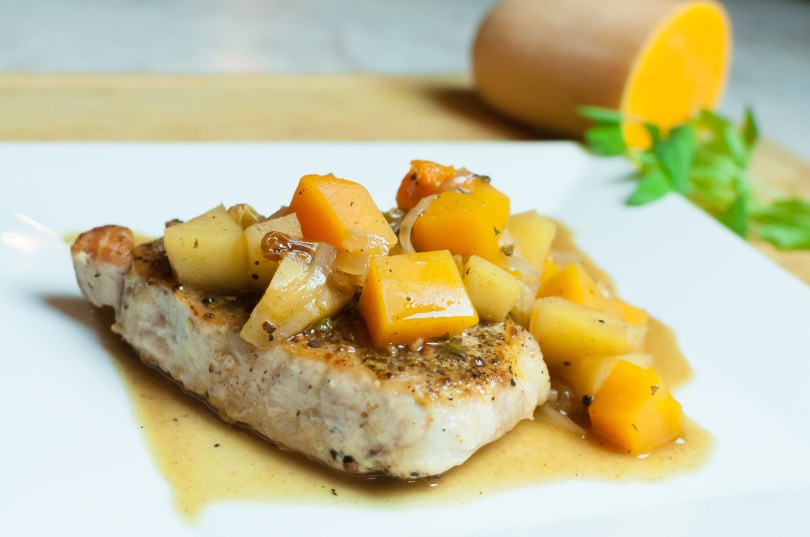 Fall is officially here and what better way to jump in then with seasonal vegetables like squash and apples! This recipe was inspired by one of my favorite Food Network stars, Rachael Ray. Tammy and I are constantly inspired by her vibrant personality and deliciously simple recipes. I tried Rachel’s Apple Juice Pork a few years ago and fell in love with it, so easy and so tasty. I love the contrast of tart, yet sweet, apples with pork as well, so added that in with brown sugar and cinnamon. Pork loin is a great lean, white meat alternative to chicken, and it goes especially well with these cozy Fall flavors. Try it this week!