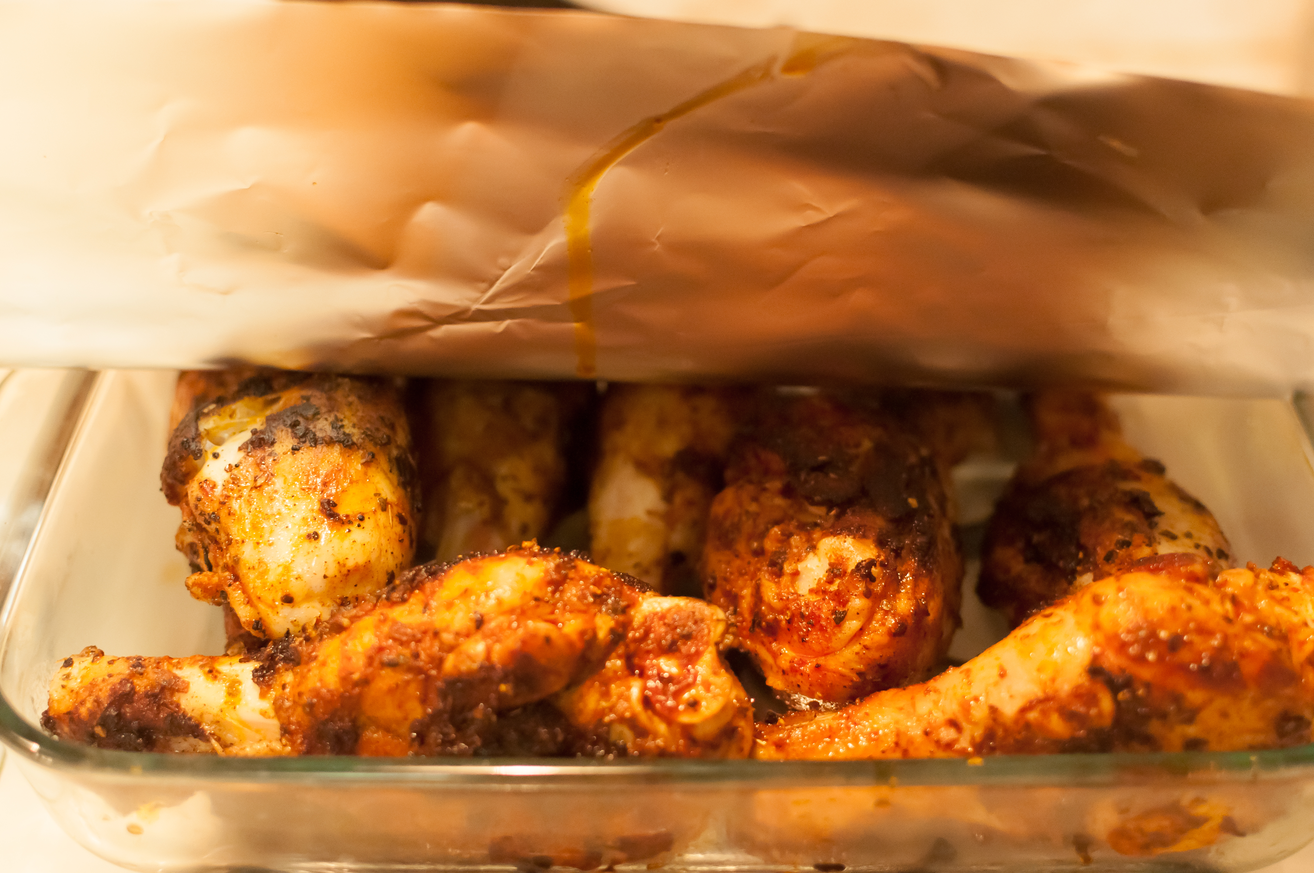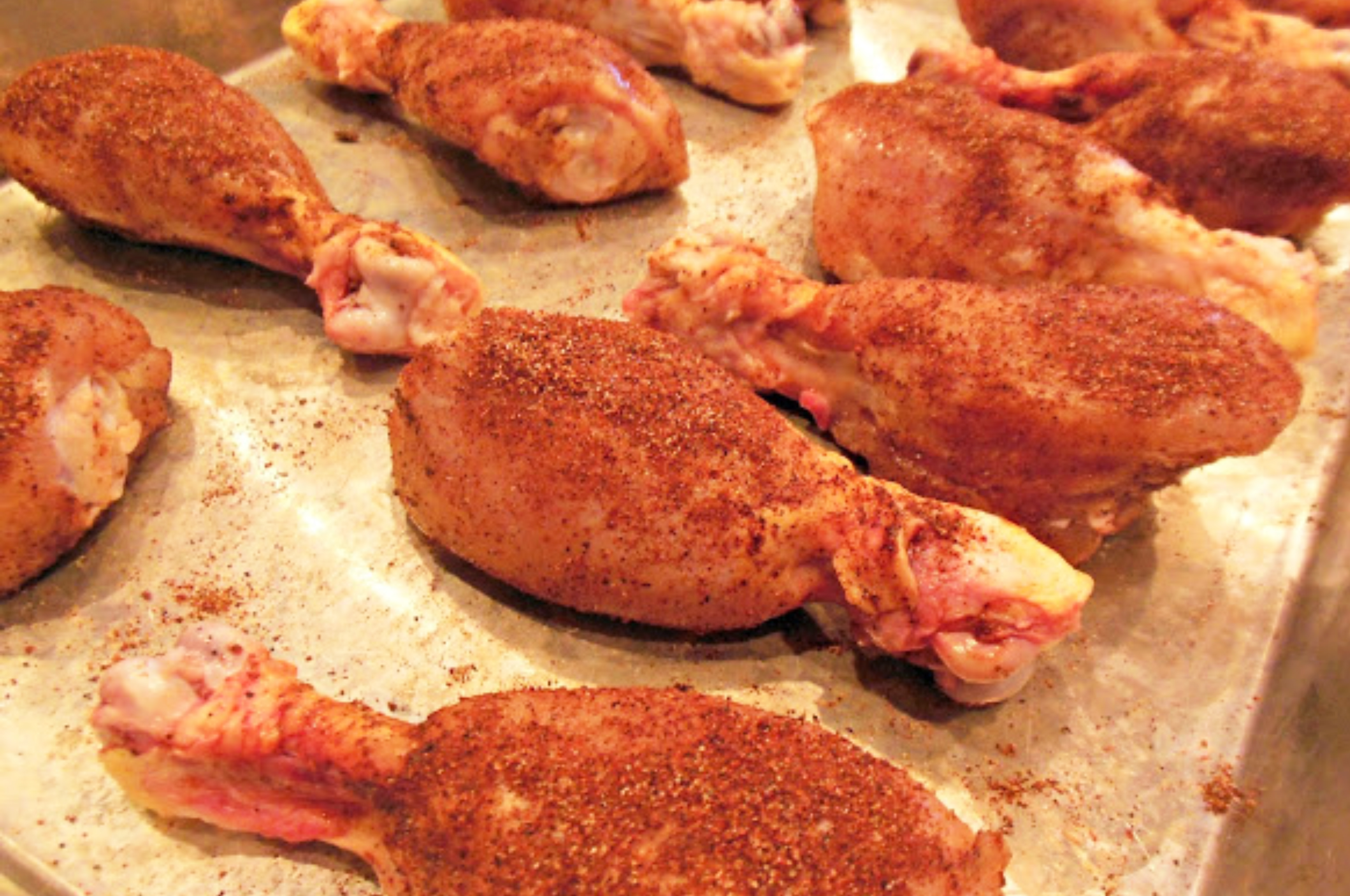 - Remove skin from drumsticks, wash with water, then dry thoroughly with paper towels. Score around the meat with little cuts so seasonings penetrate inside. Brush olive oil on drumsticks, then season each to taste with salt, garlic seasoning, pepper and/or chipotle chili powder, smoked paprika and oregano. To avoid too much sodium, I recommend just a small pinch of salt and generous amounts of other seasonings. Press in seasonings while still keeping an even coating. Marinate in fridge for at least 1/2 hour to overnight.