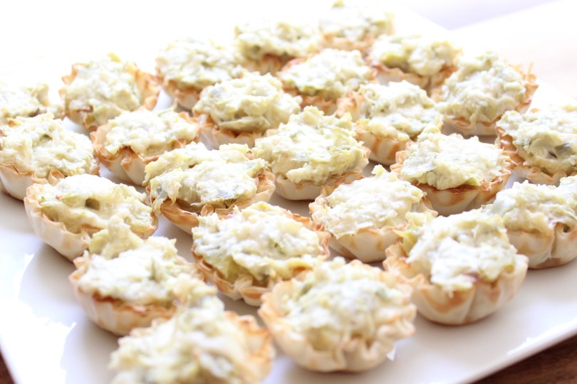 Game day or just a summer gathering with friends-these are tasty little bites that will go quickly! My mama LOVES my artichoke dip. I had some phyllo cups in my freezer that I didn’t end up using for a party I had, so I decided to mash the 2 together! This recipe made 30 little, cutie cups and boy, were they gone quickly! Think about this one for your next gathering!