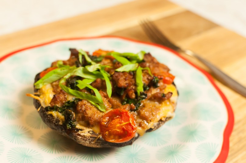 Portobello Mushroom Pizza w/ Italian Sausage, Tomatoes and Kale